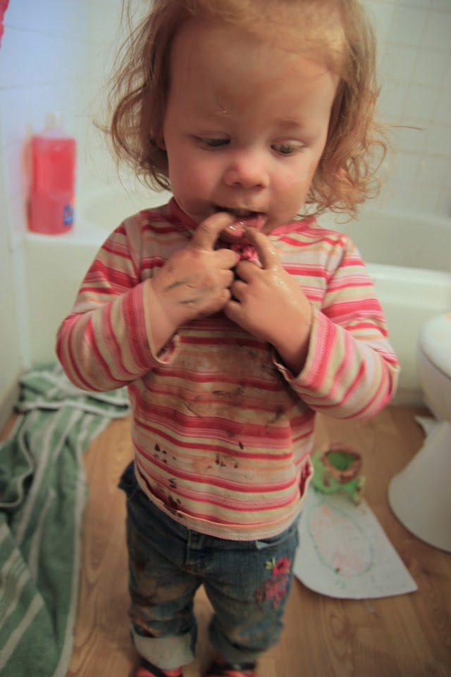 Oh my! My little one found my my makeup bag and took the mascara. She looked like an untidy cat. Good thing she didn't poke her eyes with those.