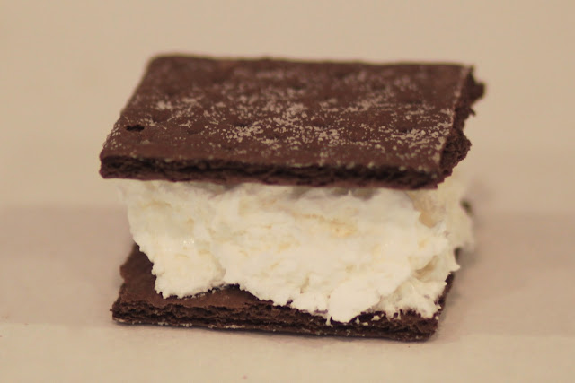 We have been having some serious hot weather around here. I am not used to it and I have kind of a hard time living in anything above 80 degrees. 70's are perfect but when it gets above 75 inside our house I feel like I can't do anything. Anything except eat ice cream and feel uncomfortable. I could probably eat a gallon of ice cream in one hot day, and that is a ton of calories. That is why these homemade ice cream bars are perfect. They are only 150 calories (depending on how much cool whip you use) and they are good. Serioiusly they were way better than I expected them to be. They almost taste like store bought ice cream sandwiches. And they are super easy to make. Perfect for a hot day.