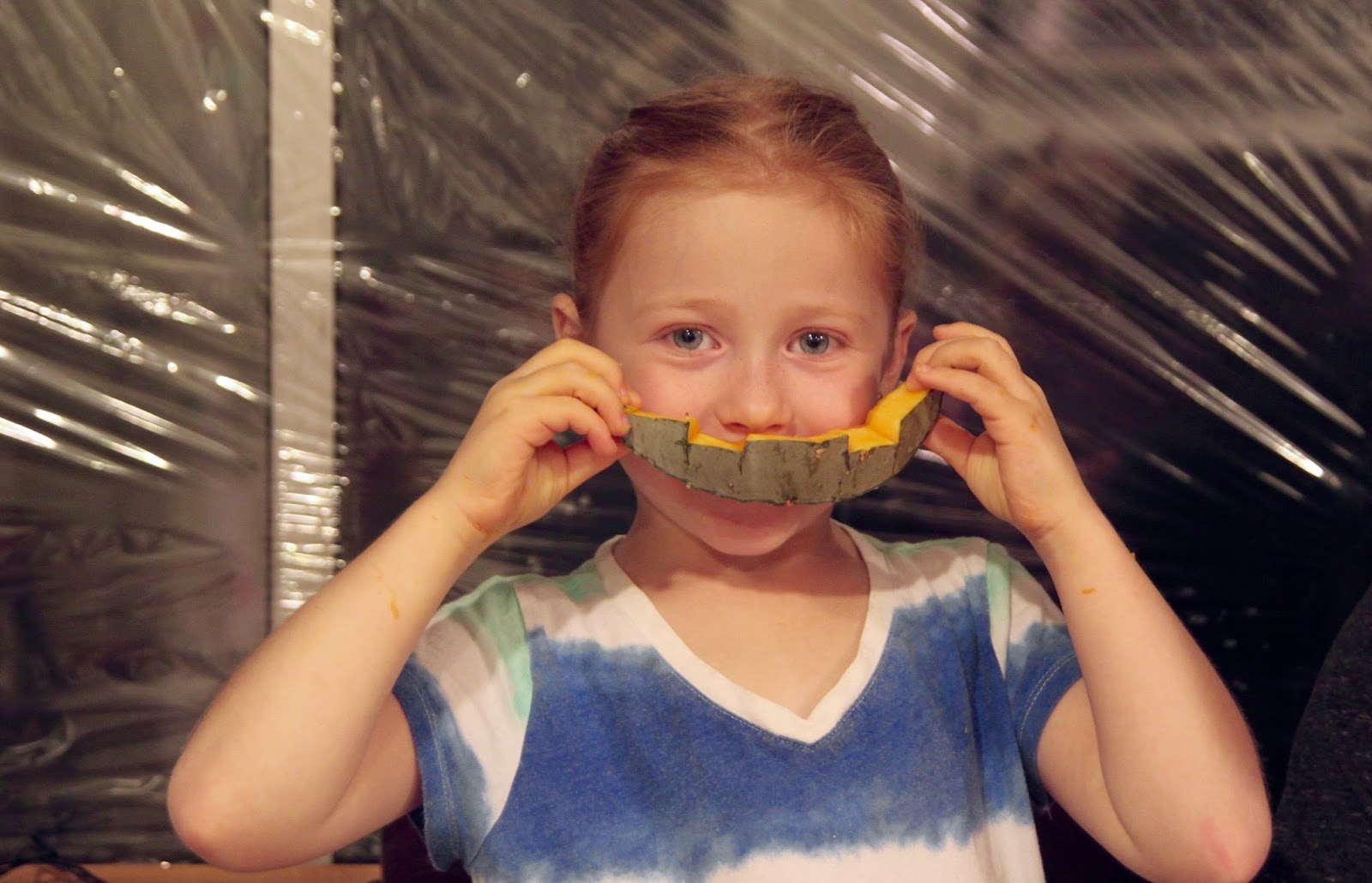 The kids didn't choose your average orange pumpkin this year. Scarlett and Leon went with bumpy pumpkins and Penelope found a cool blue one. I think they look great and love that they are just a bit different.