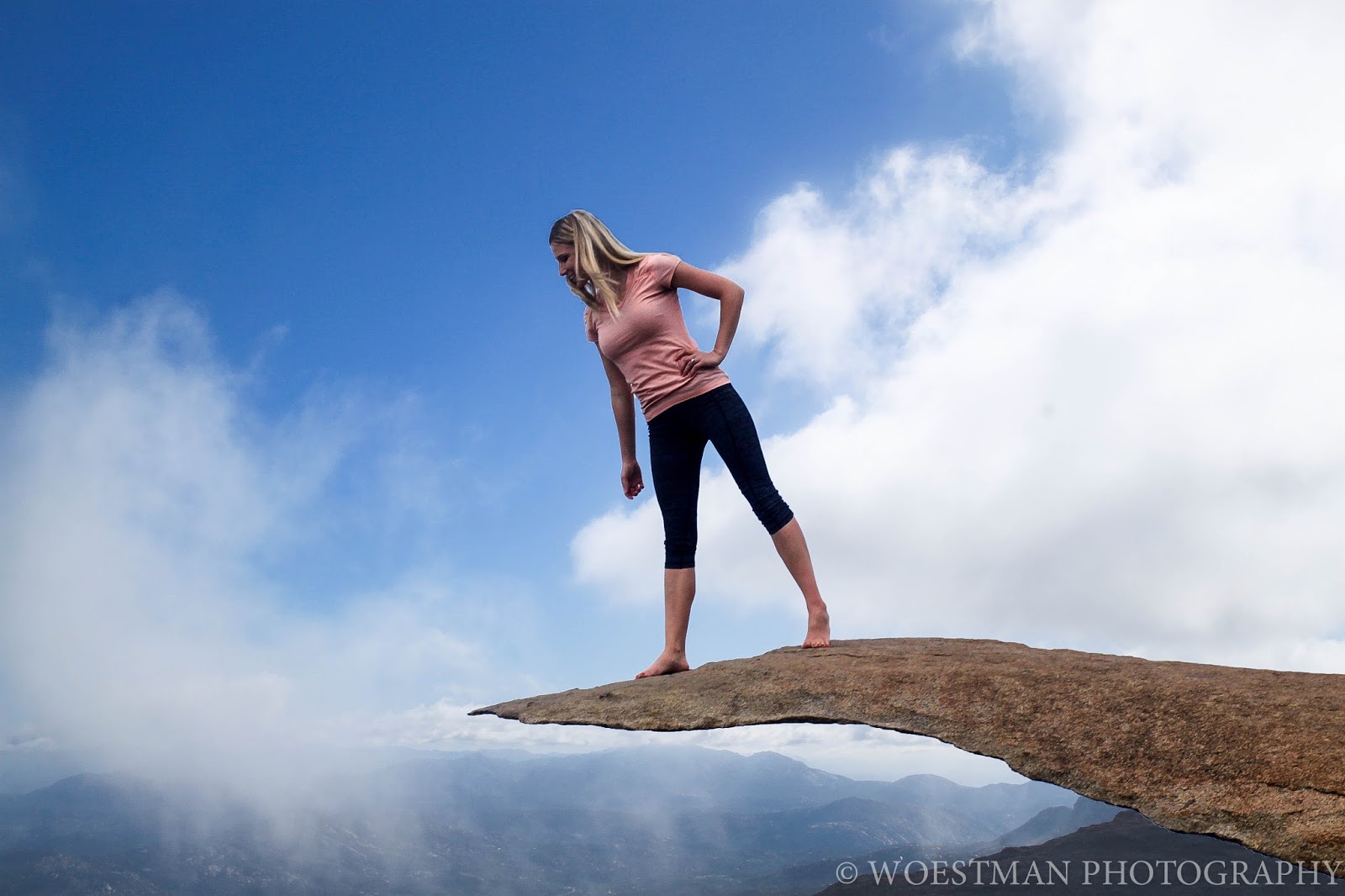 This next one was by far my scariest pose. The rock angles down a little near the edge and I did not feel comfortable hanging my feet off it. You can tell I'm trying to lean back in the picture.