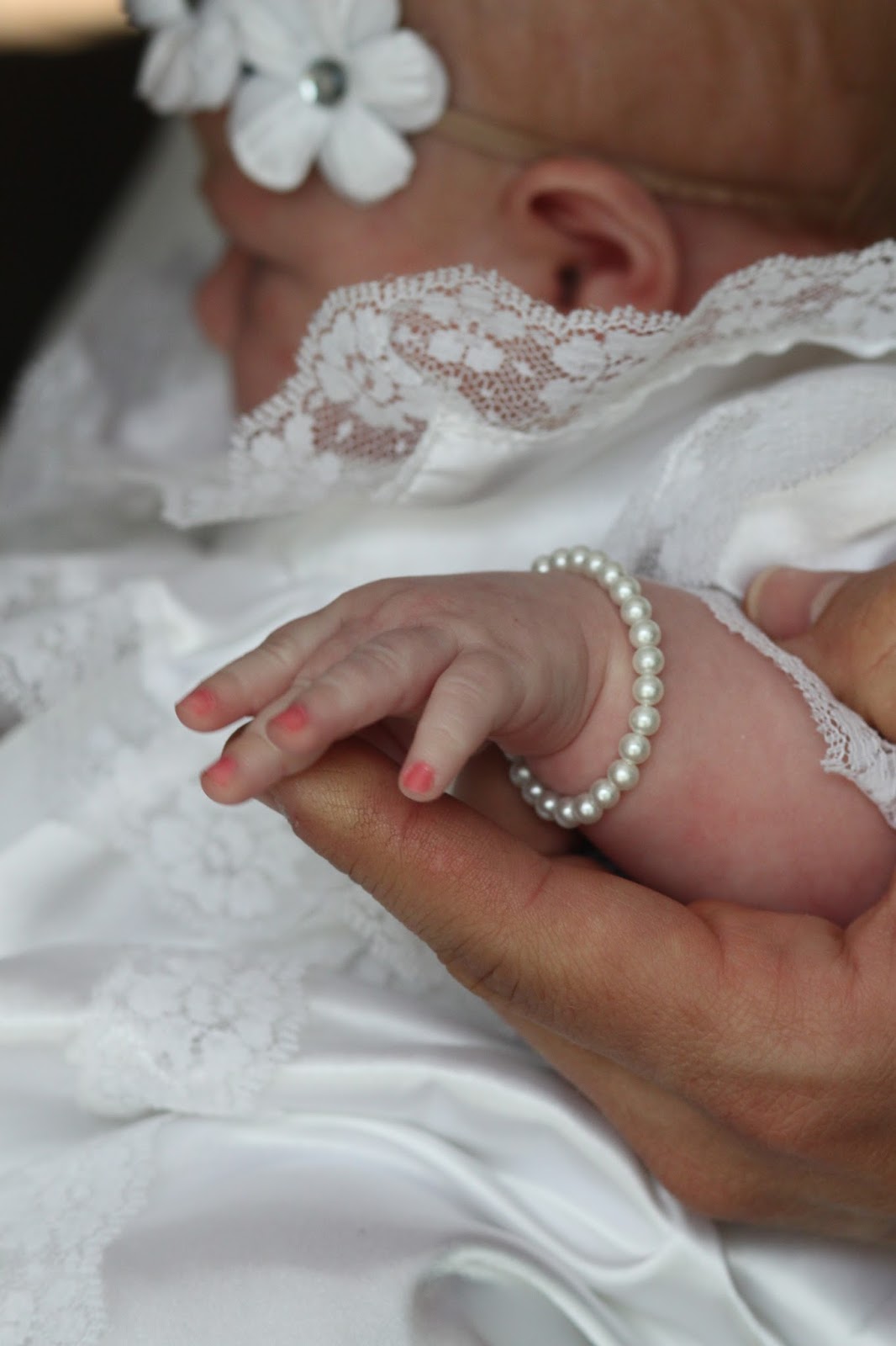 I stayed up the night before making headband options for her. Bob's mom made her dress, it is the same one Penelope and Scarlett wore for their baby blessings.