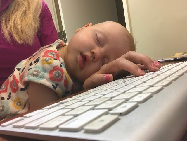 Calista needed a nap while I was working on the computer. Since she doesn't ever like to be put down in her bed she's gotten good at sleeping in weird positions.