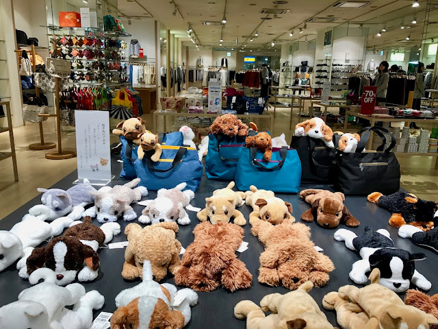 I thought it was funny that they had dogs in purses in the display window. I'm not sure if you are actually supposed to buy these stuffed animals to carry around in your purse or not, but I've seen them displayed like this before.