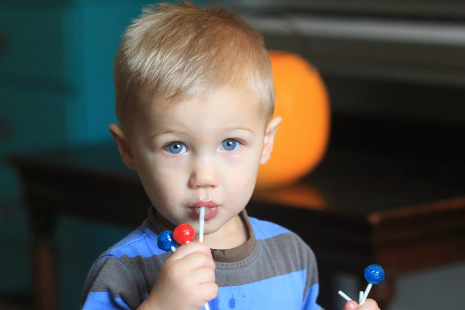 Tucker said his costume was itchy so I let him take it off for some of the pre Halloween events but for the night of trick-or-treating he had to wear it. I didn't make it for nothing!