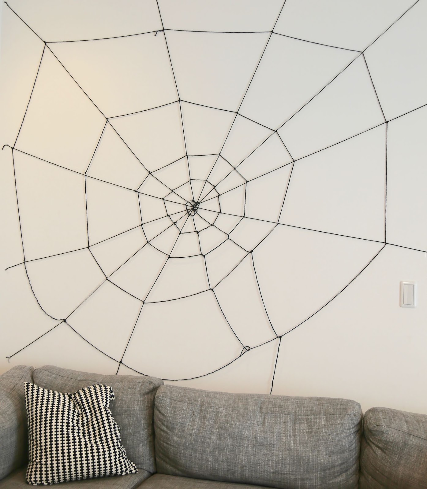 I love how this web turned out. Bob put it up with just black yarn. It turned a big blank white wall into a fun simple and practically free decoration.