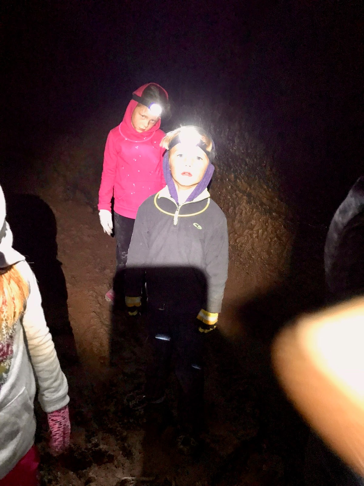 The cave is cold and pitch black. We did not pack for this so the day before we went to the thrift store and bought tennis shoes for me and sweaters for everyone. We also picked up headlamps and batteries. It was totally worth it. I wish we had just packed those things, but I'm glad we spent the money on them even if it was just for the day. The caves stay at 42 degrees regardless of the outside weather. The main cave is 2.5 miles long so it quickly becomes blacker than you can imagine. Everyone is supposed to have lights and extra batteries, just in case.