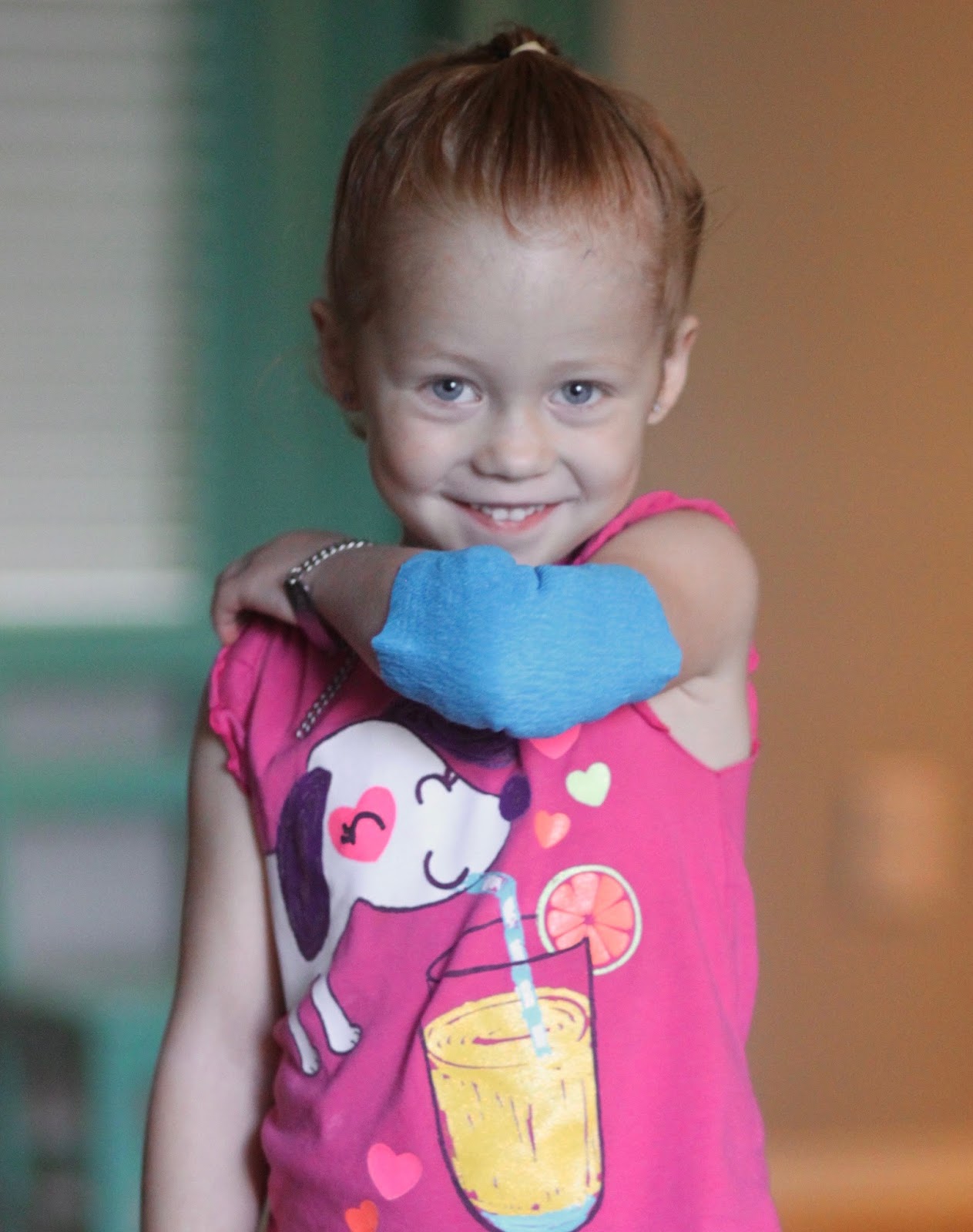 My kids like wearing it, they think it is just kind of fun. Although it is soft, having something on her arm like that bothered Scarlett a little bit, so we just put it on over a long sleeve shirt and she was happy as a clam.